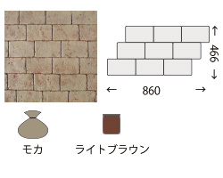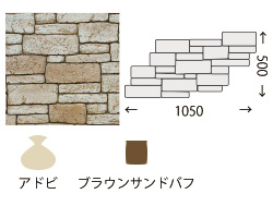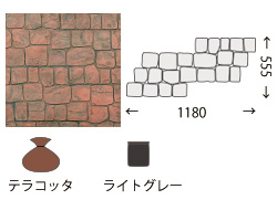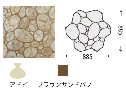 硬化する過程のモルタルにゴム製のマットやカービングツールを使用し石積みやレンガ積み、岩などを彫刻技術にて表現する工法です。