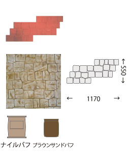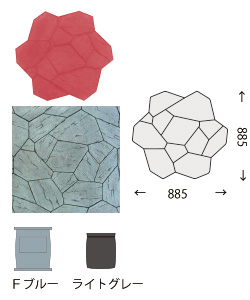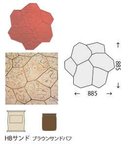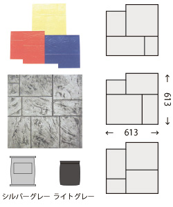 床面に流しこんだ生コンクリートが固まる前に、天然石やレンガなどの模様のついたゴム製の型を押し付けて、コンクリートの表面に模様を転写する工法です。